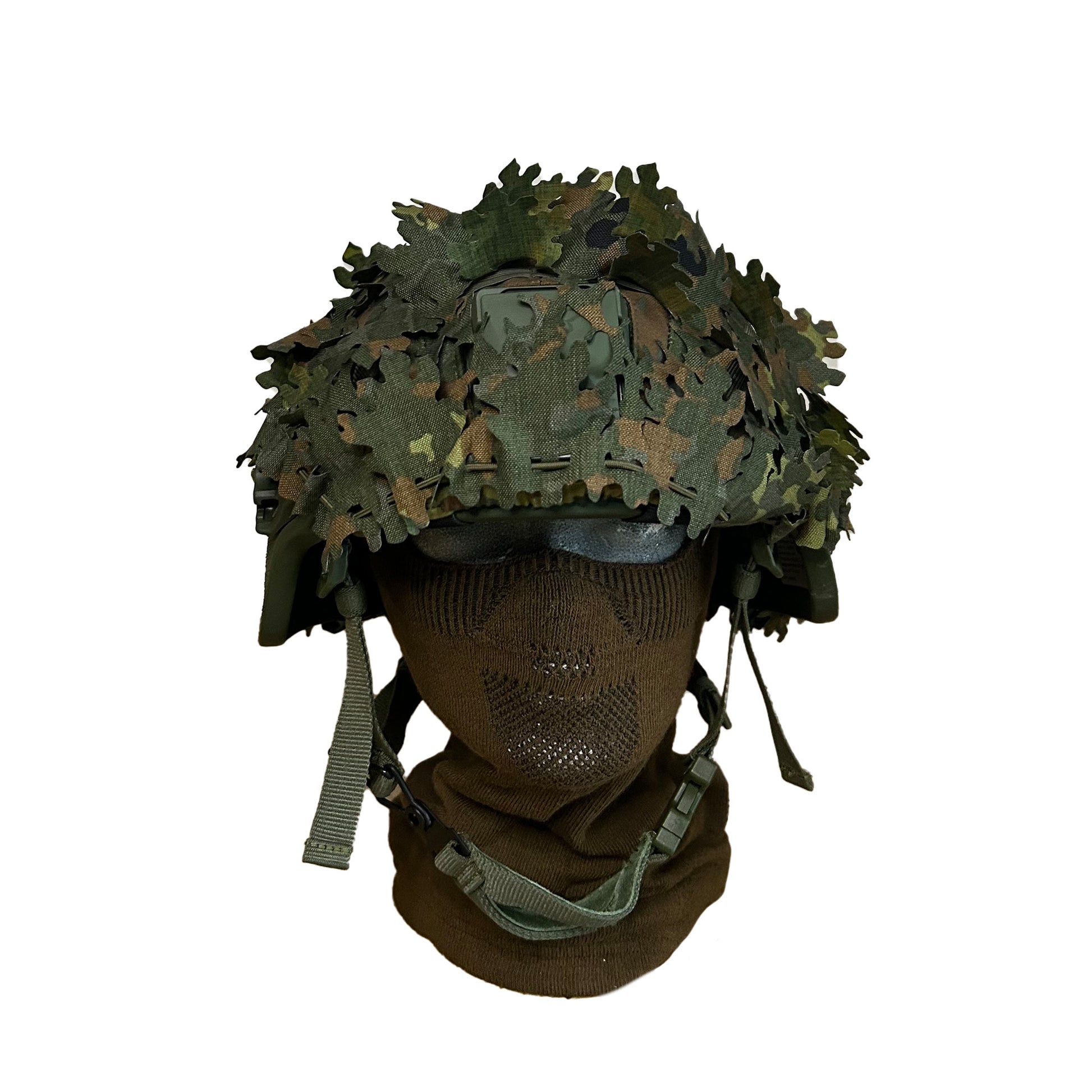 Die neue Formgebung sorgt für ein voluminöseres, natürlicher wirkendes Tarnbild, das den Helm besser in die Umgebung einbettet und seine Konturen effektiv verwischt. Zusätzlich kann der Tarneffekt unkompliziert mit unseren Scrim Leaves, Jute oder anderen im Handel erhältlichen Produkten noch verstärkt werden